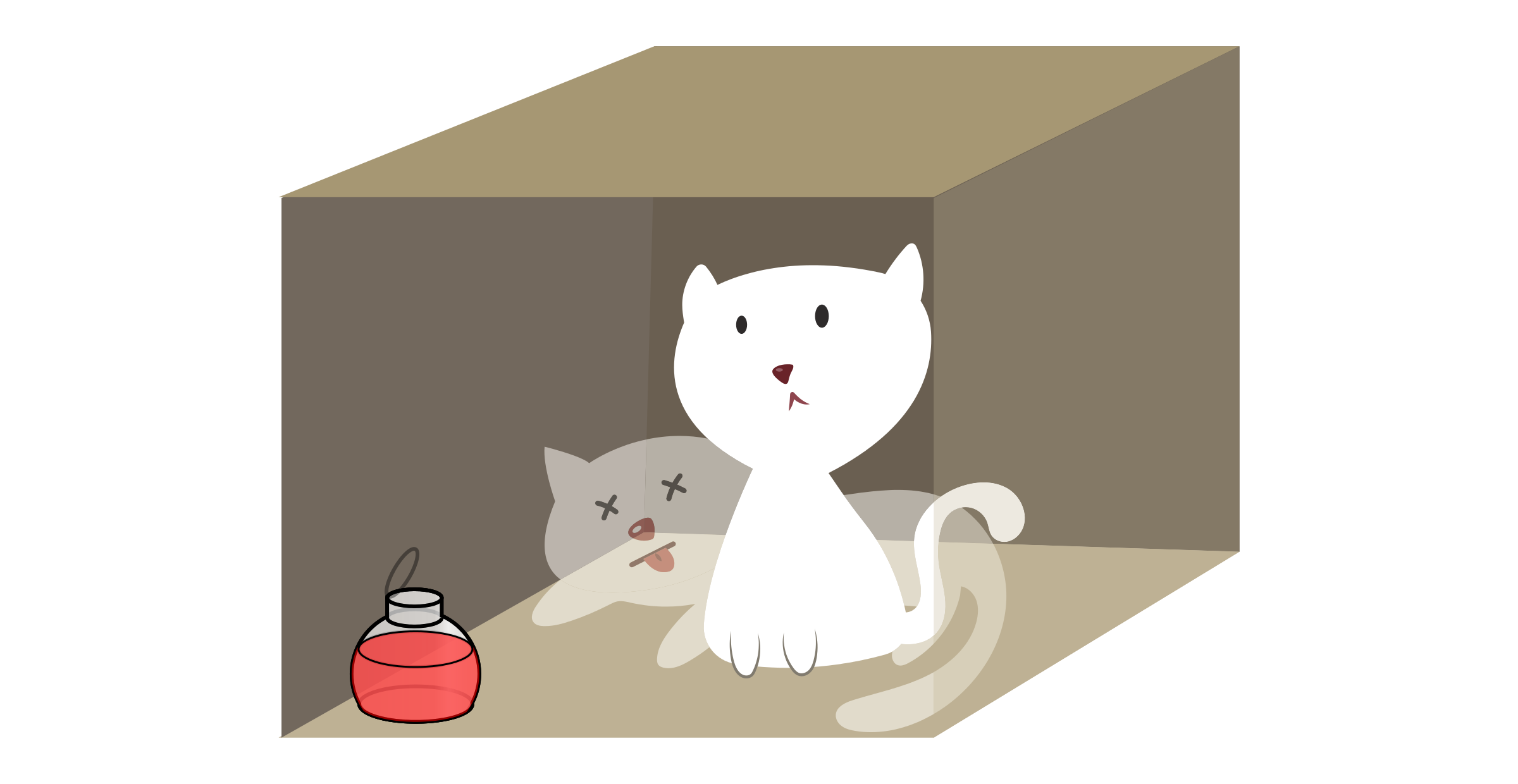Imagine the box is closed, and you are staring at it from the outside wondering if the cat is still alive. A normal person would say, “Either the vial is intact and the cat is alive, or the vial is broken and the poor cat is dead”. A quantum physicist watching the same situation says, “The cat is both alive and dead; the vial both intact and broken. The moment I open the box, the cat will ‘collapse’ into either a live cat or a dead cat”. To the quantum physicist, the cat seems to have momentarily transcended the binary of life and death.